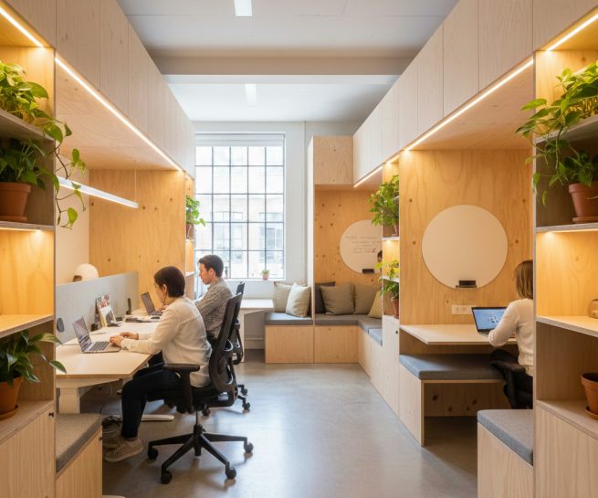 Ich kombiniere warme Texturen mit technischer Kühle – für eine Atmosphäre, die gleichermaßen Ruhe ausstrahlt und Innovation fördert.